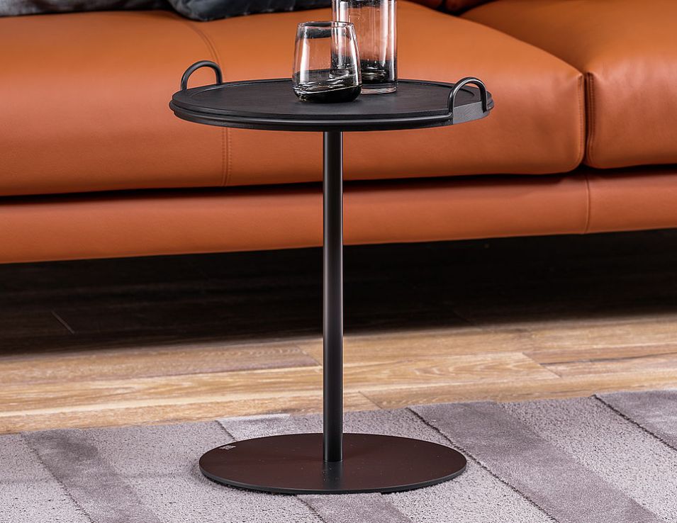 ROLF BENZ 922 Beistelltisch mit grazilen Standfuß und einer aussgerwöhnlich schönen Tablett Optik. Tischplatten aus massiver Eiche oder Nussbaum geben einen schlichten und wertigen Kontrast zum Standfuß lackiert in schwarz, umbragrau und marrone. Die grazilen seitlichen Hänkel der runden Tablett Optik durchbrechen die schlichte Optik mit Raffinesse.