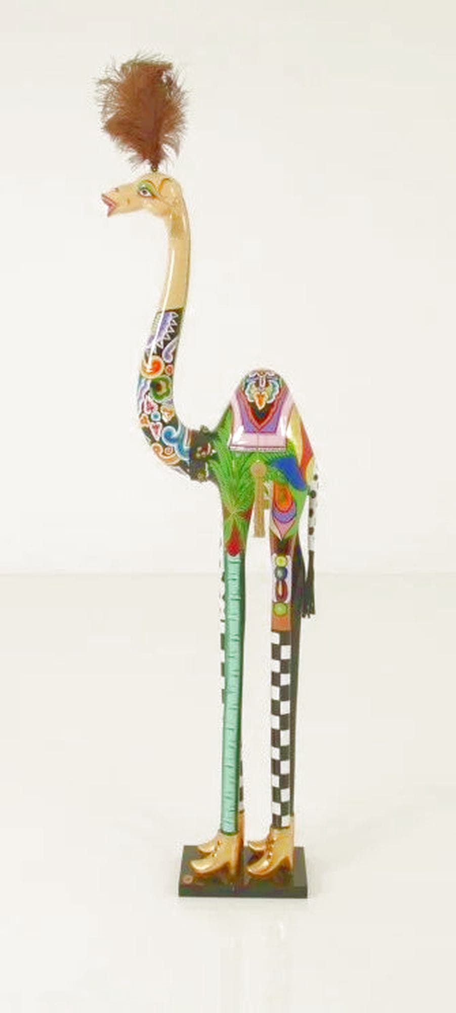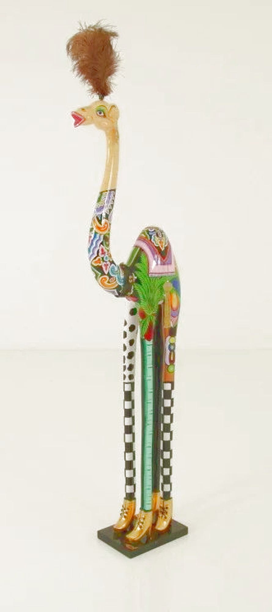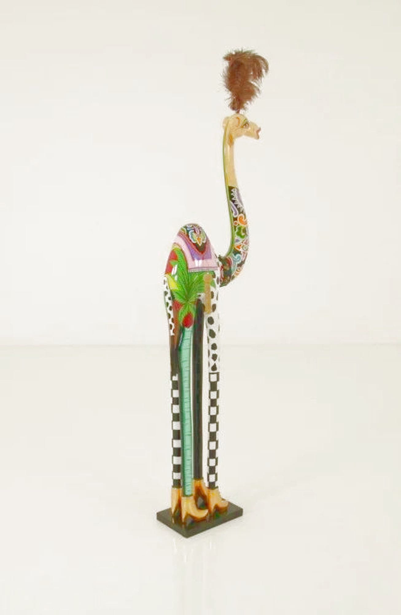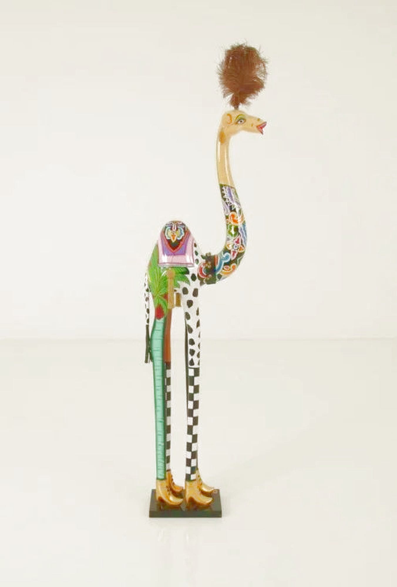 Details: DRAG Kamel LAILA zegit mit schlanken langen Bein und einer Affinität zum weiblichen "Herausputzen" einen bleibenden Eindruck. Mit langen Wimpern, Ohrringen und dem besonders feinem Federkopfschmuck, schmilzt jeder Anbeter beim Anblick dieser vollen Kusslippen einfach nur dahin .. besonders auch bei der eindrucksvollen Bemalung und den liebenswert goldenen HighHeels. Die grazile und wohlgeformte Figur des DRAG Kamels LAILA zeigt sofort: hier wird viel Wert auf den besonders effektvollen Auftritt gelegt.